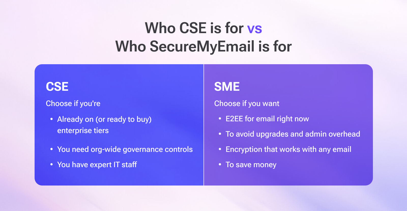 CSE is designed for orgs that want governance controls (policy + audit + key ownership) — which is great.It also means you’re typically dealing with: